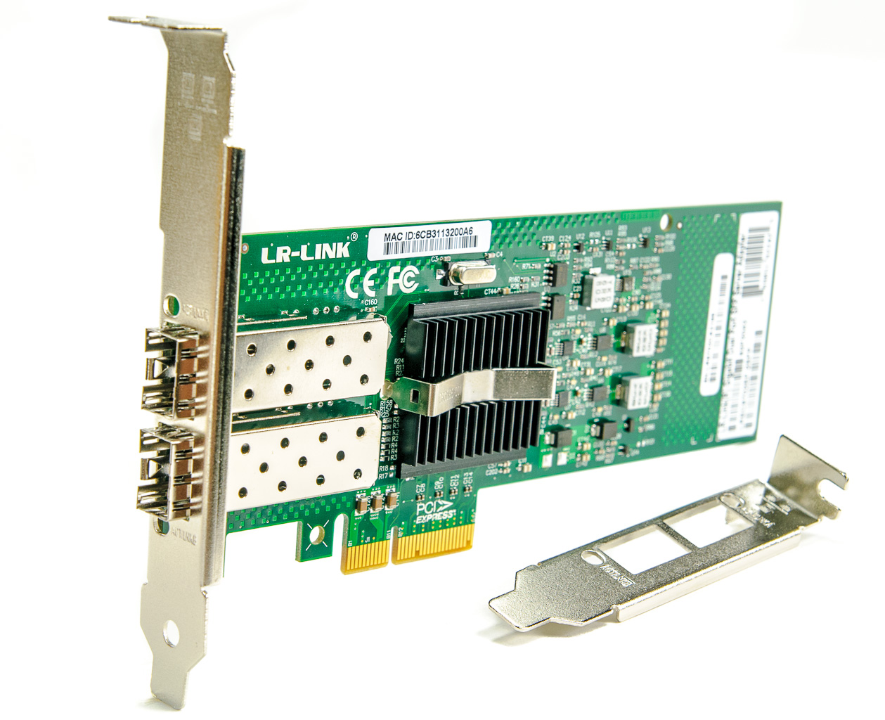 LR-LINK LREC9702EF-2SFP adapter Dual Port Server Adapter PCIe sieci ethernet 1GbE. Zbudowany z Intel 82576 Gigabit Ethernet Controller, nowe adaptery prezentują kolejną ewolucję funkcji sieciowych GbE dla centrum sieci przedsiębiorstwa i danych. Funkcje te obejmują wsparcie dla procesorów wielordzeniowych i optymalizacji dla wirtualizacji serwerów.