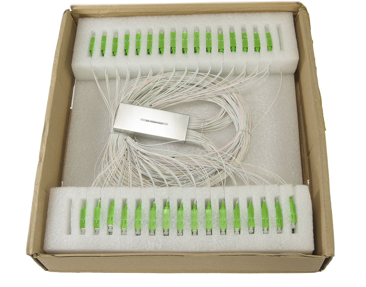 Splitter optyczny 1x128 (jedno wejście, sto dwadzieścia cztery wyjścia) z symetrycznym podziałem mocy (0,78125% na każdym wyjściu). Posiada obudowę typu steel box, średnica zewnętrzna kabla wynosi 0,9 mm, a jego długość 1 m. Zastosowano włókno singlemode typu G.657.A1. Symetryczne splittery są podstawowym elementem sieci PON potrzebnym każdemu operatorowi. Oferowany produkt posiada złącza typu SC/APC.