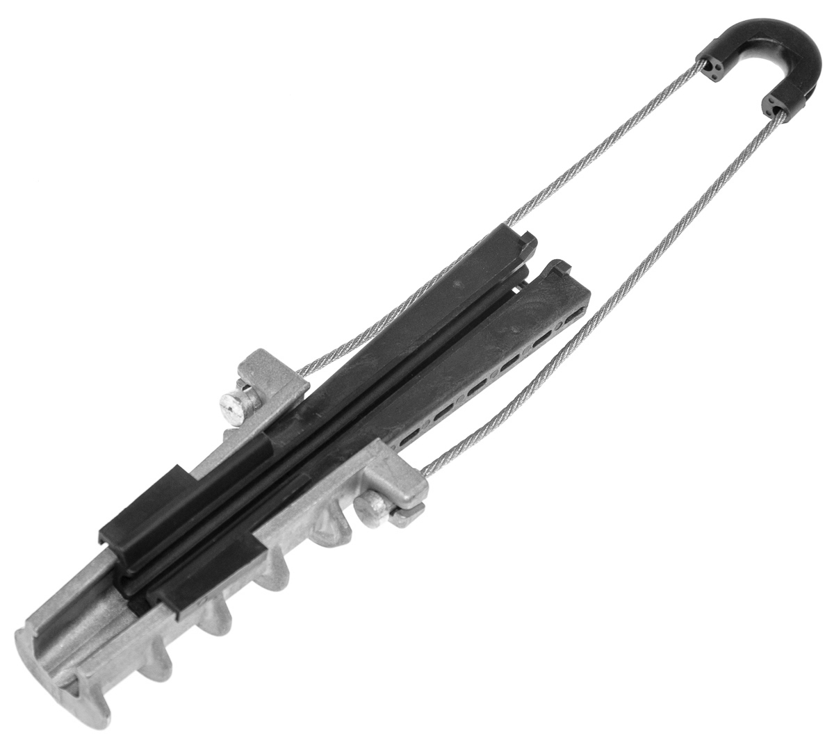 Uchwyt odciągowy stosowany do podwieszania kabli w liniach napowietrznych do kabli współosiowych, wzmocnionych typu: