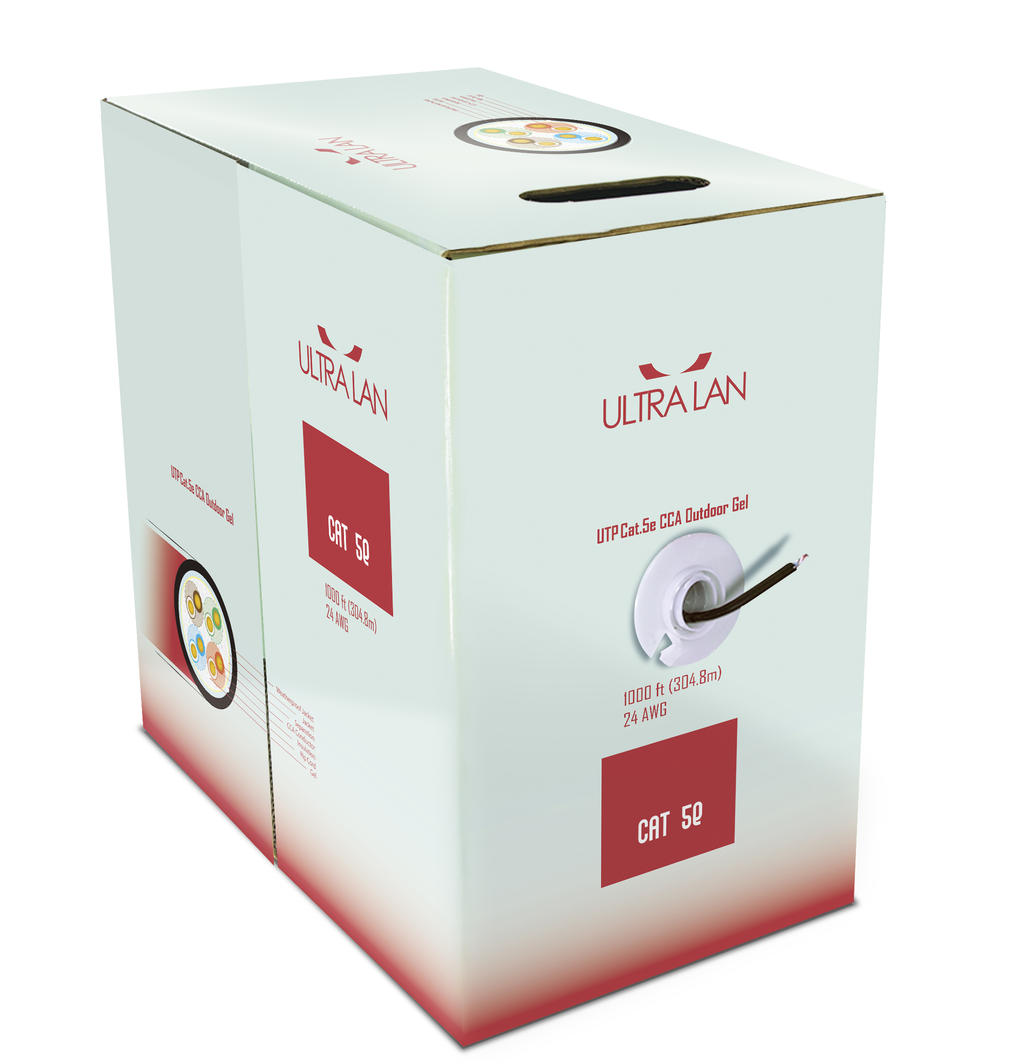 UltraLAN żelowany kabel UTP kat. 5e. Żyły zostały wykonane z aluminium pokrytego miedzią (CCA). Przewód przeznaczony jest do wykorzystania na zewnątrz budynków, posiada podwójną powłokę - warstwa zewnętrzna wykonana z PE, warstwa wewnętrzna wykonana z PVC, a do tego żel zapobiegający wzdłużnej penetracji wody. Jest odporny na negatywny wpływ warunków atmosferycznych. Średnica zewnętrzna wynosi 5,2 mm, natomiast średnica żyły około 0,5 mm (24AWG). Przewód z powodzeniem może być wykorzystywany do transmisji danych na zewnątrz budynków. Sprzedawany jest w kartonie, w którym znajduje się około 305 metrów kabla (1000 ft).