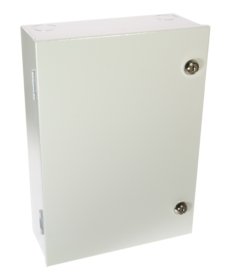 Przełącznicę można zamontować na ścianie korzystając z odpowiednich śrub i kołków. W górnej i dolnej części skrzynki znajdują się po 2 otwory umożliwiające przeprowadzenie kabli. Przełącznicę wykonano z blachy stalowej o grubości 1 mm, pokryta została powłoką Magnelis i pomalowana proszkowo w kolorze jasnoszarym RAL 7035.