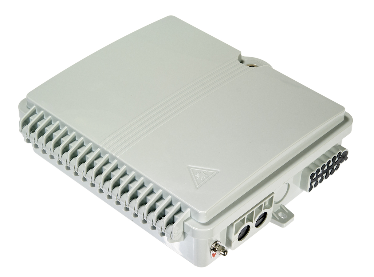 W dołączonej ramce można zamontować splitter kasetkowy 1:8 (maksymalnie), zajmujący tylko jeden slot. Mufę można zamontować naściennie przy pomocy dołączonych w zestawie kołków..