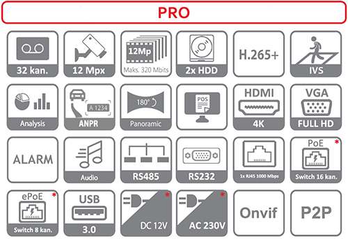 Nowoczesne rejestratory sieciowe marki Dahua gwarantują nie tylko nieprzerwane rejestrowanie obrazu z kamer 24/7, ale dają również możliwość dostosowania parametrów do indywidualnego zapotrzebowania zarówno użytkownika, jak i miejsca instalacji. Opracowana rozbudowana seria rejestratorów Pro dostarcza operatorom systemu rozwiązania z elastycznymi opcjami sterowania i zarządzania całym powstałym systemem monitoringu..