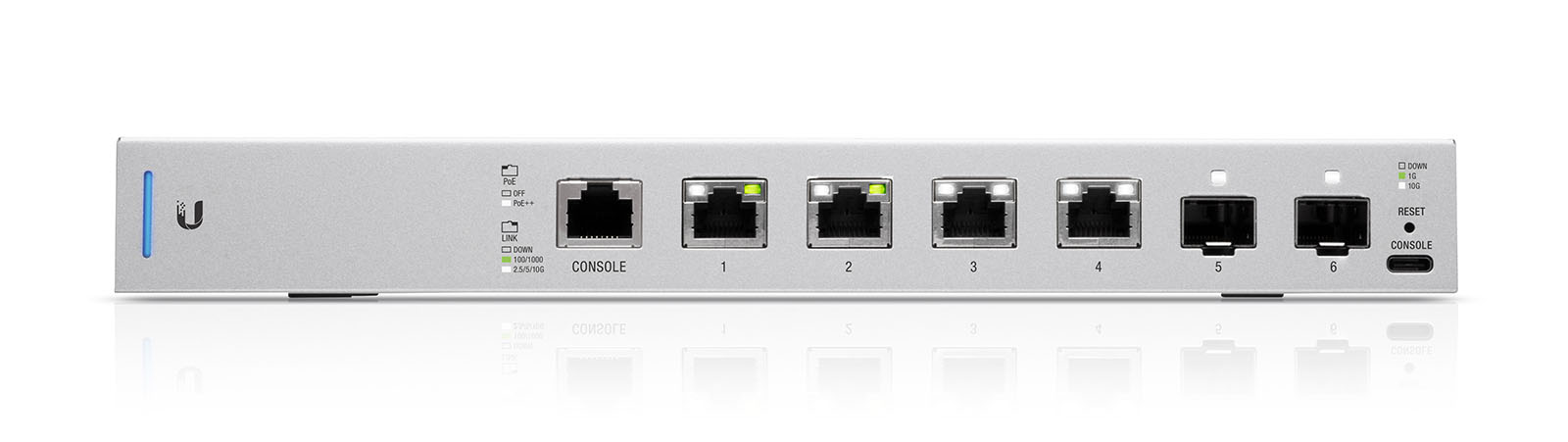 US-XG-6POE to zarządzalny switch firmy Ubiquiti wyposażony w 4 porty 10G Ethernet oraz 2 sloty SFP+. Współpracuje z siecią UniFi, jest kompatybilny z systemami punktów bezprzewodowych oraz kamer IP. Zarządzanie odbywa się z poziomu interfejsu Web, za pomocą kontrolera UniFi. Switch umożliwia zarządzanie sieciami i VLANami, obsługuje kontrolę 802.1x, RADIUS VLAN oraz różne tryby pracy portów (switching, mirroring, aggregate). Na portach Ethernet znajdują się wyjścia PoE w standardzie 802.3bt (PoE++). Switch może zasilać w dwóch trybach: 802.3af (44-57 V) oraz 802.3at/bt (50-57 V). Maksymalna przepustowość przełączania wynosi 120 Gb/s (non-blocking 60 Gb/s), a prędkość przekazywania pakietów 89,3 Mp/s.