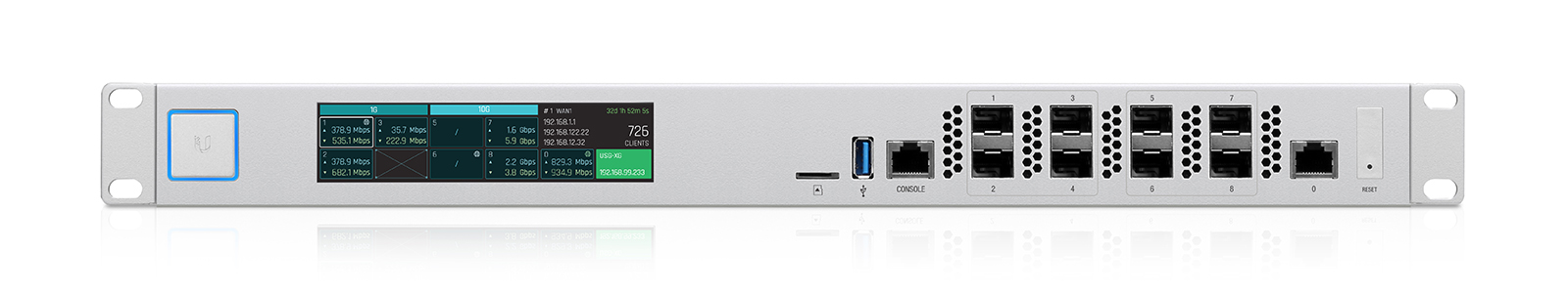 Ubiquiti USG-XG-8 to Security Gateway przeznaczony do sieci UniFi. Dzięki dużej wydajności umożliwia podłączenie nawet 20000 klientów, doskonale nadaje się więc do zastosowań w rozbudowanych sieciach. Wyposażony jest w automatyczną funkcję QoS, która priorytetyzuje ruch głosowy i video, dzięki czemu zapewnia wysokiej jakości usługi. Urządzenie posiada zaawansowane funkcje zapory sieciowej i ochrony sieci oraz danych. Gateway wyposażony został w 8 slotów SFP+ i 1 gigabitowy port Ethernet, jest w stanie obsługiwać połączenia o dużej przepustowości.