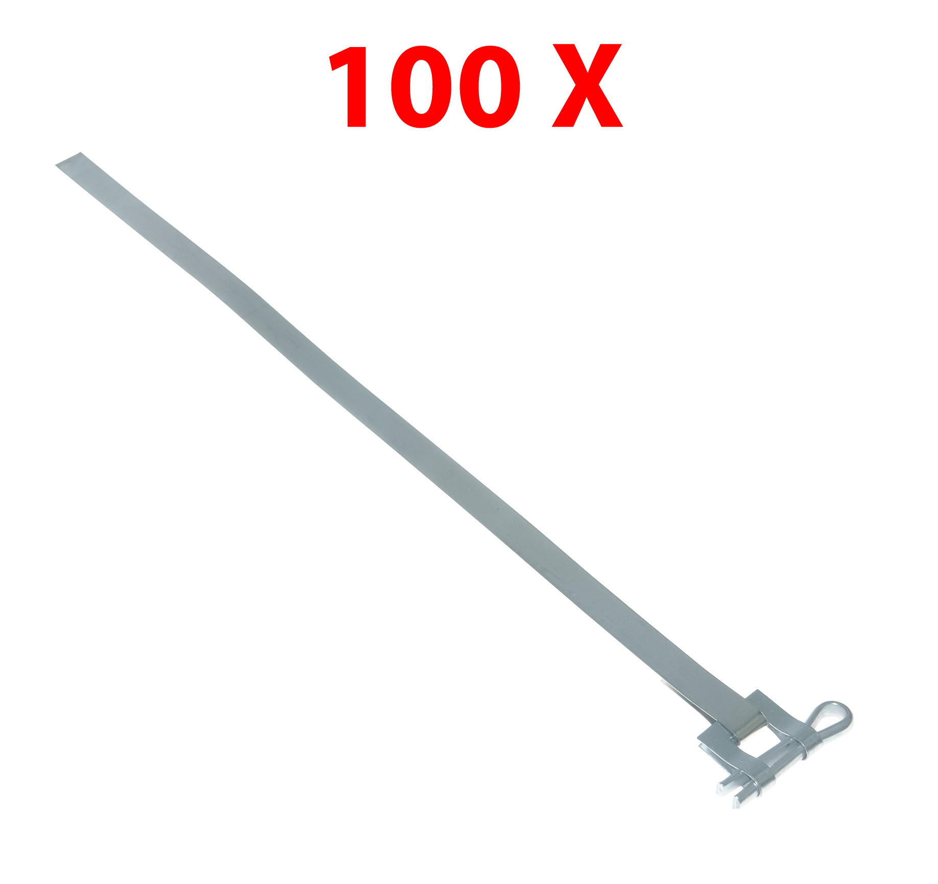 Oferowany produkt to opaska wykonana ze stali nierdzewnej, jej długość to 265 mm, a szerokość 4 mm. Może być z powodzeniem wykorzystywana na zewnątrz budynków, do montażu anten czy innych urządzeń sieciowych. W zestawie znajduje się 100 opasek, cena podana jest za cały zestaw.