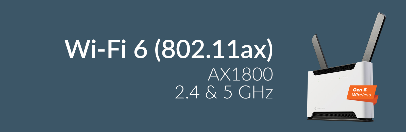 MikroTik Chateau LTE18 ax to bezprzewodowy router wspierający nowoczesny standard Wi-Fi 6. Może pracować w pasmach 2,4 i 5 GHz jednocześnie, obsługuje protokoły IEEE 802.11 b/g/n/ax oraz IEEE 802.11 a/n/ac/ax. Wspiera podwójną polaryzację (2x2 MIMO / dual-chain), dzięki czemu umożliwia uzyskanie maksymalnej, teoretycznej przepustowości WiFi na poziomie 574 Mb/s w 2,4 GHz i 1201 Mb/s w 5 GHz. Urządzenie obsługuje również pozostałe funkcje związane z Wi-Fi 6 - MU-MIMO (jednoczesne nadawanie i odbieranie danych od wielu urządzeń), Beamforming (kształtowanie wiązki) czy WPA3 - najnowszy standard szyfrowania danych.