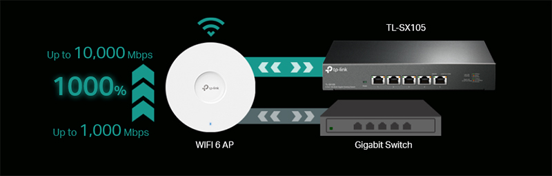 Wiele punktów dostępowych w standardzie WiFi 6 posiada port o przepustowości wyższej niż 1 Gb/s. Wyższa prędkość połączenia Ethernet pozwoli ci w pełni wykorzystać możliwości oferowane przez standard 802.11ax.