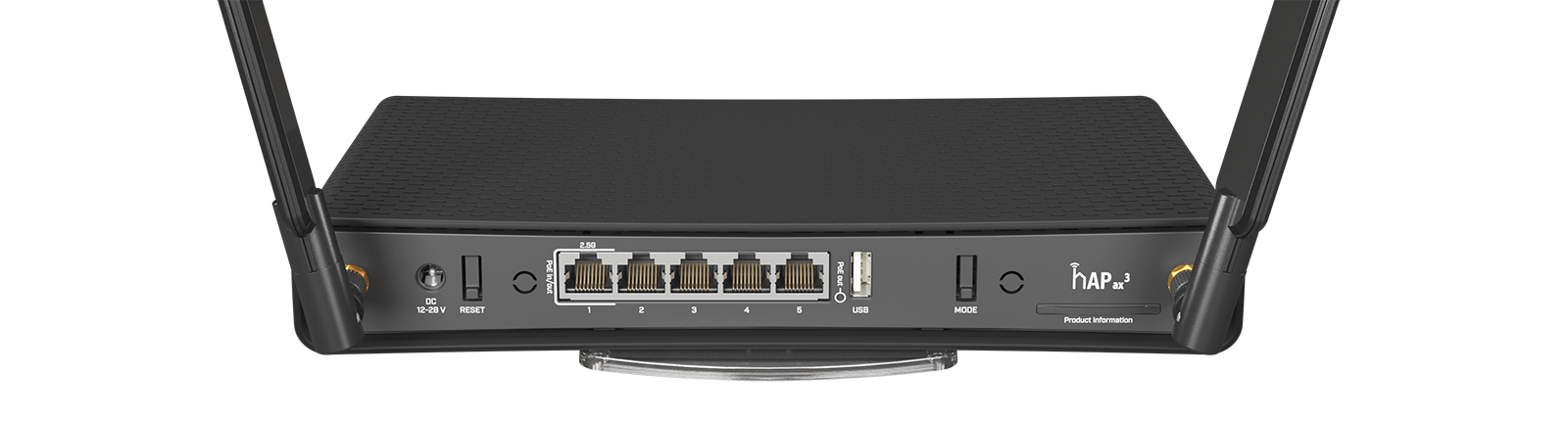 W routerze hAP ax3 producent zastosował dwie zewnętrzne anteny dookólne, które cechują się zyskiem energetycznym 3,3 dBi w paśmie 2,4 GHz i 5,5 dBi w 5 GHz. Zapewniają duży zasięg transmisji oraz pokrycie sygnałem martwych stref.