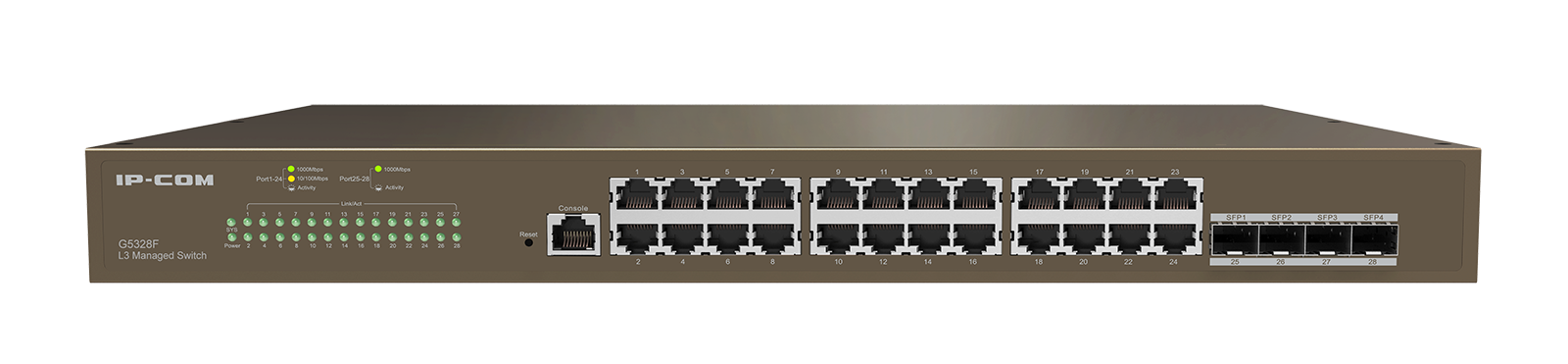 IP-COM G5328F wspiera zaawansowane zarządzanie w warstwie Layer 3. Obsługuje ARP, statyczny routing IPv4 i routing w oparciu o VLAN. Wspiera również DHCP Snooping, protokoły Spanning tree (STP / RSTP / MSTP) oraz multicasy - IGMP Snooping. Oprócz tego oferuje również standardowe funkcje Layer 2, takie jak QoS, obsługa VLAN, listy kontroli dostępu (ACL) czy agregację portów.