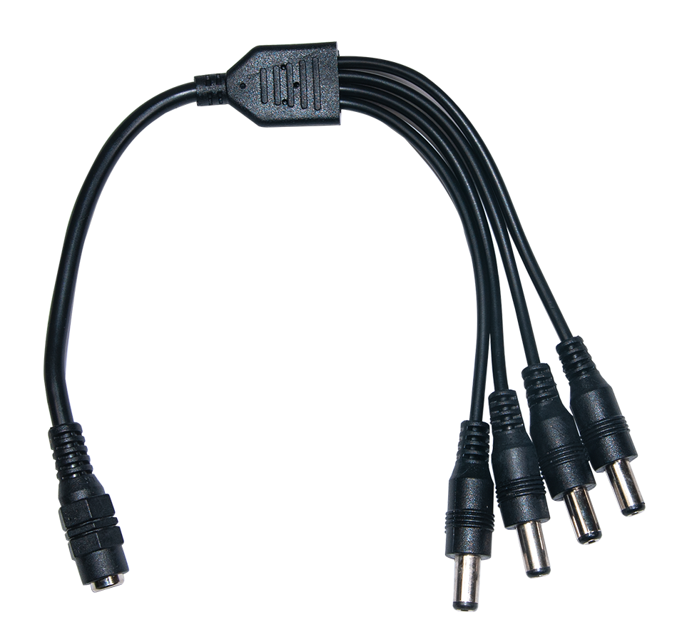 Wysokiej jakości rozdzielacz zasilania z jednym gniazdem DC oraz czterema wtykami DC.